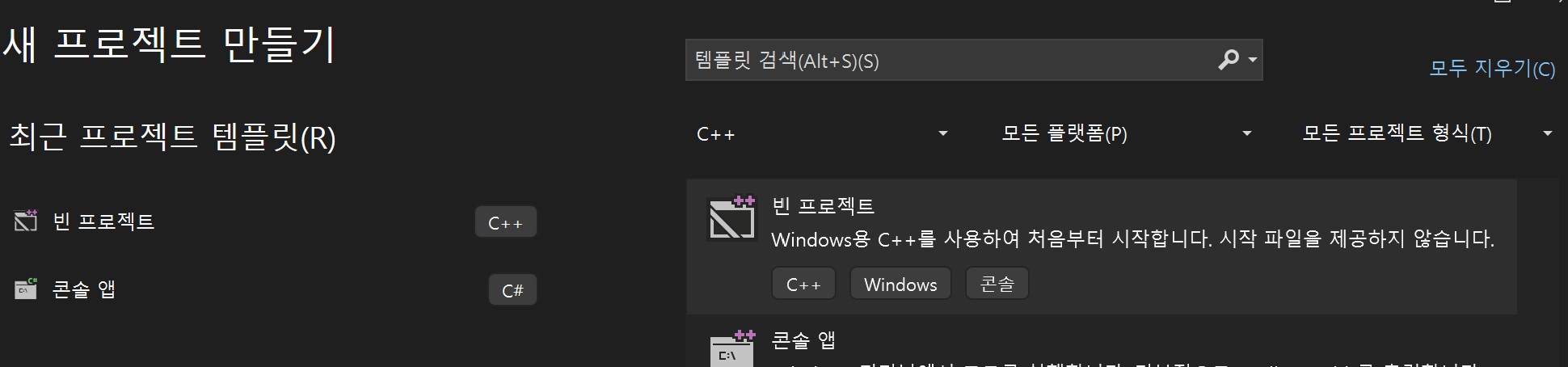 비주얼 스튜디오를 실행하고 나서 새 프로젝트 만들기 를 한다음 빈 프로젝트를 고른다